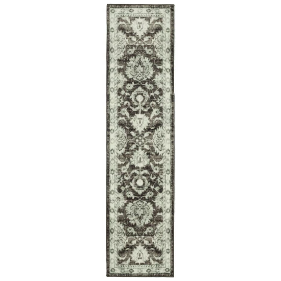 A timeless and traditional Persian inspired style is modernized by bold contemporary color and subtle distressing in the striking style of this area rug. This design showcases an oriental lotus and branch pattern with an intricate border and is available in a variety of vibrant color options, including teal, purple, dusk charcoal/blue, and grey.